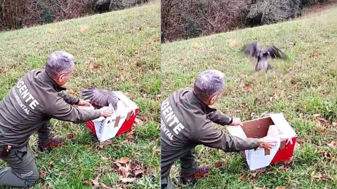 Un vídeo muestra cómo comienza a caer material hasta que, a los pocos segundos, la torre se desploma por completo, generando una intensa nube de polvo