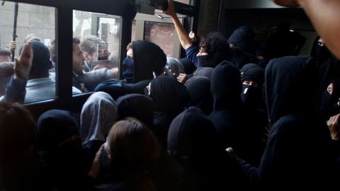 En la Pompeu Fabra se han producido momentos de tensión entre estudiantes en una de las puertas de acceso entre los favorables a la huelga y los que querían acceder a clase