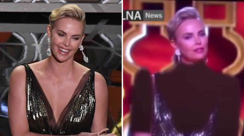 La actriz apareció en pantalla con los brazos, el escote y el cuello ocultos tras una sombra negra