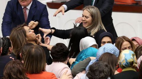 La tangana se desató cuando Aylin Nazliaka se esposó en el estrado para tomar la palabra, bloqueando así el desarrollo de la sesión