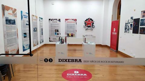 Pente los materiales puede vese una esbilla de semeyes coles distintes formaciones y de los momentos más importantes de la so trayectoria, asina como carteles y distintos oxetos rellacionaos cola banda