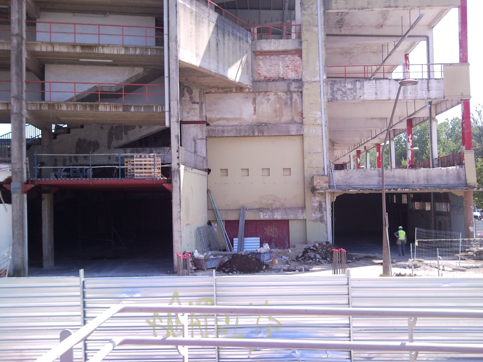 Os dejo estas fotos de como se encuentra en estos momentos la reforma de El Molinón, como veis en muchos casos se han tirado las paredes y por ejemplo en la grada sur se puede ver completamente al descubierto la planta baja, como en la oeste el antiguo parking.