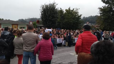 La comunidad escolar protesta a la entrada de las aulas en la escuela de La Felguera por los desperfectos que se acumulan en el edificio