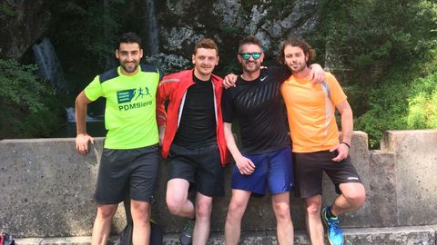 Cinco amigos polesos iniciaron anoche una peregrinación a Covadonga. Esperan que ayude al Sporting en su partido de mañana