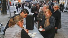 08 ene 2017 Oda al ferrolanismo... y al arroz con leche Cientos de personas formaron una larga cola en el Cantón para recoger alguna de las raciones que repartió el Concello ÁLVARO ALONSO