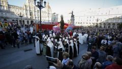 08 oct 2018 La devoción pudo al descontento La comitiva discurrió sin incidentes y sirvió para convocar a la protesta de hoy en María Pita D. Vázquez / E. eiroa