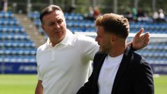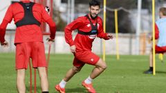 David Castro, que causó baja al final del curso por una fractura en la falange proximal del primer dedo de su pie izquierdo y Chiki, se ejercitaron al margen