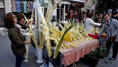 El entorno de la Plaza de Abastos ofrece este fin de semana la estampa típica de una decena de vendedoras que ofrecen un complemento indispensable para la procesión del Domingo de Ramos