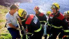 04 may 2013 Rescatan a un pescador con heridas graves en O Portiño La búsqueda del hombre, que se precipitó contra las rocas, duró una hora Emiliano Mouzo
