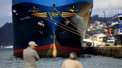 Los operarios descenderán en un andamio para revisar las grietas provocadas por la colisión contra el arrastrero con base en Marín tras la inspección de los buzos