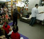Crónica | Actividad literaria para niños en la librería Nós El escritor Xavier Docampo y el ilustrador Xosé Cobas reunieron a una docena de chavales en A Coruña para componer una historia partiendo del torbellino de ideas propuestas por el público; una experiencia que se convertirá en un libro