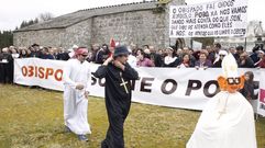 Nueva manifestación de los vecinos de las parroquias afectadas por el traslado del cura Ramón Pérez. Desplegaron pancartas y se vistieron de monjas, curas y obispos