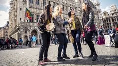 Nueva manifestación de los vecinos de las parroquias afectadas por el traslado del cura Ramón Pérez. Desplegaron pancartas y se vistieron de monjas, curas y obispos