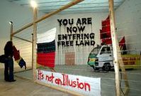 Dieciséis artistas internacionales ofrecen un enfoque crítico más allá de la globalización Plantea a los visitantes que accedan al recinto como ciudadanos europeos o del resto del mundo