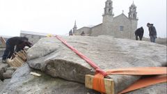 28 jul 2015 Los técnicos tantean hoy la Pedra de Abalar para llevarla a su sitio Culminaron el transporte del fragmento fracturado hasta el atrio J. V. Lado