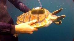 01 ago 2015 La tortuga «Rostro», ya libre, prefiere nadar por Galicia Recorre una media de 19 kilómetros diarios, que le han llevado a las montañas submarinas próximas a la comunidad j. v. lado