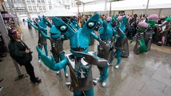 Dos plataformas, la Asociación de Jubilados Españoles y el Movemento Galego en Defensa das Pensións Públicas (Modepen), coincidieron a la misma hora en la Praza Maior