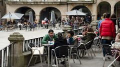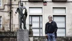 Francisco Rodríguez, que fue durante dos décadas líder de la patronal ourensana, elige la praza del Corregidor como su rincón, en parte por la escultura de su amigo Buciños