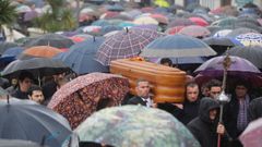 A pesar de la lluvia y del viento, A Illa entera acompañó los restos mortales del joven, que fueron llevados a hombros por sus familiares desde la lonja hasta el cementerio