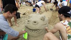 01 jun 2018 Artistas de la arena a pesar de la lluvia Un chaparrón forzó el traslado del concurso de esculturas de A Lanzada, pero no impidió su celebración m. alfonso