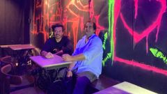 Pedro Corredoira disfrazó la gran obra de Xaime Cabanas en el bar El Taller que tanto frecuentaba el artista y que en las últimas horas fue visitada por los responsables de la exposición que tiene lugar en el Kiosco y en Palexco con motivo del décimo aniversario de la muerte del creador.