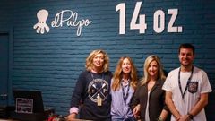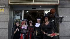 El equipo de La Coruñesa se toma muy en serio la fiesta de Halloween y hasta el hijo de los propietarios se desplazó ex profeso desde Pamplona para adornar el local de la avenida de Fisterra