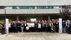 Una nutrida representación de empleados de El Corte Inglés salió la calle con el lazo rosa en la solapa como muestra de apoyo a la lucha contra el cáncer de mama cuyo día mundial se conmemoró este miércoles