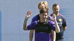 Víctor ensayó un once para el Camp Nou en el que reforzaba el centro del campo y optaba por Canella en el lateral, mientras uno de sus ayudantes grababa el entrenamiento desde las alturas
