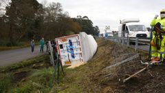 03 ene 2022 Camión volcado y otro fuera de la carretera en el Camiño de La Cross El doble accidente colapsó el vial de acceso a las instalaciones del Grupo Nogar en Campañó, en Pontevedra Ramón Leiro