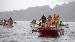 En Galicia hay tres mil bateas que producen unas 300.000 toneladas de un bivalvo del que viven muchas familias arousanas; acompañamos a una de ellas en un día de faena