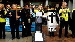 13 feb 2013 Afectados por las preferentes «entierran» su particular sardina La comitiva del «duelo» se inició en la central de NCG y se desplazó hasta la Xunta Soledad Anton