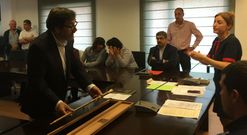 Ricardo Sánchez entró por primera vez en el despacho de la alcaldía como regidor de Miño, mientras en el salón de plenos se escuchaban gritos de «¡Vergüenza!»