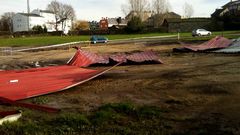 24 ene 2013 Cae de madrugada la chapa lateral de un edificio en Guitiriz El material de aluminio acabó tirado en la Rúa Boa Veciña Xosé María Palacios