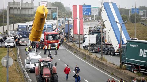 Comerciantes, agricultores y transportistas, de Calais bloquearon ayer numerosas vías de transporte en las inmediaciones de la ciudad en protesta por la demora en el desmantelamiento del campamento de inmigrantes conocido como La Jungla. Los manifestantes denuncian la creciente peligrosidad de los intentos de llegar a Reino Unido por parte de los refugiados. Media centena de tractores se unieron a un convoy de aproximadamente 40 camiones para realizar una «marcha lenta» por la autopista A6 a la vez que varios cientos de personas formaron una cadena humana para bloquear el acceso a las terminales del ferri y al Eurotúnel.