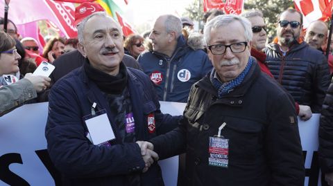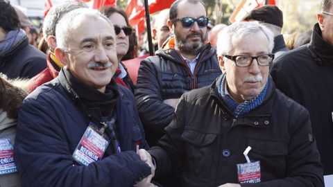 19 dic 2016 . Actualizado a las 00:02 h.El secretario general de CC.OO., Ignacio Fernández Toxo, y el de UGT, Pepe Álvarez, aseguran que las movilizaciones van a estar sostenidas en el tiempo, «todo el tiempo que sea necesario», hasta que el Gobierno tenga capacidad no solo de dialogar, sino de negociar y acordar. Así lo señalaron los representantes sindicales en la rueda de prensa previa a la manifestación para protestar por los límites impuestos por el Gobierno al diálogo social y por los derechos de las personas, donde también Álvarez recalcó que «hay razones más que de sobra para llevar estas movilizaciones a cabo».