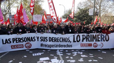 «No vamos a permitir que se nos quite ningún derecho y tampoco nos vamos a quedar sólo manteniendo los recortes que ha habido en los últimos años, que recuperar los derechos», señaló Álvarez, tras recordar que le parece especialmente «importante y de agradecer la presencia de los grupos parlamentarios de izquierda y partidos de izquierda en esta manifestación».