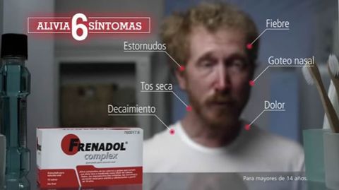 10 ene 2017 . Actualizado a las 18:27 h.Ni estornudos, ni tos seca, ni decaimiento, ni goteo nasal, ni dolor, ni fiebre. Nada debería ser un obstáculo para que el protagonista del último anuncio de Frenadol España salga a pescar con sus dos hijos durante un día nublado y desapacible. Jaime tiene un resfriado, sí, pero, según dice el anuncio, «no va a dejar que frene sus planes». El antigripal promete mejorar su lamentable estado de salud, pero al mismo tiempo lanza un paradójico mensaje durante el spot, que debería hacer que los conductores se lo piensen dos veces antes de ponerse al volante bajo los efectos del fármaco.