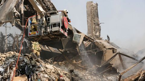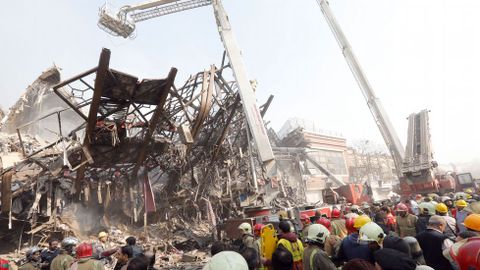 Los efectivos de rescate quedaron atrapados bajo los escombros cuando intentaban apagar el incendio que se había propagado horas antes por el edificio, que albergaba un conocido centro comercial.