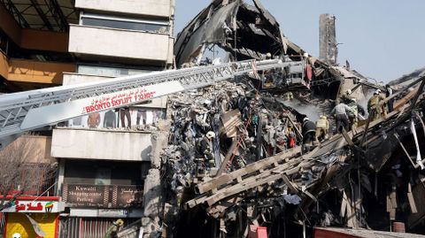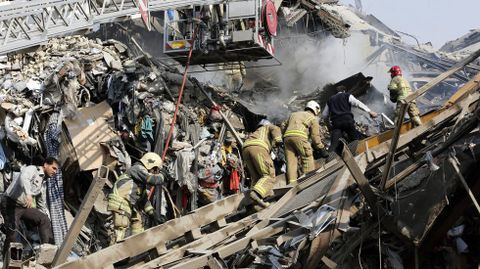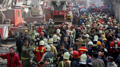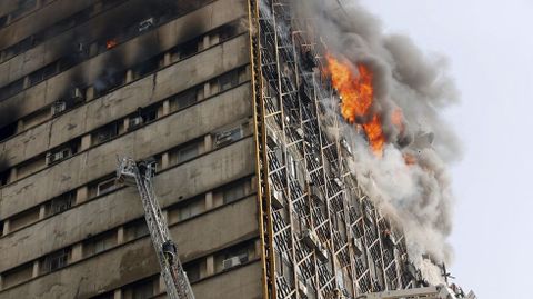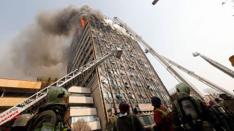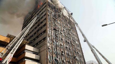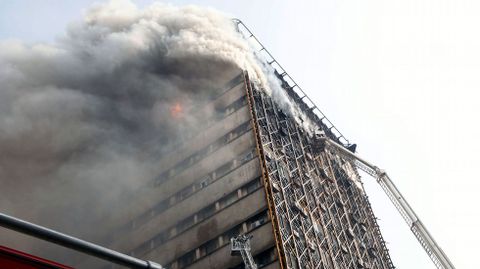 No han trascendido las causas del fuego, que comenzó en la novena planta y provocó primero el derrumbe del muro septentrional del edificio, pero el gobernador de Teherán, Hosein Hashemí, ha descartado un acto terrorista. Los alrededores del centro comercial están cortados por las fuerzas de seguridad para facilitar las labores de rescate, en las que participan los bomberos, decenas de ambulancias y helicópteros.