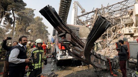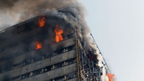 El centro comercial Plasco, construido en 1962 y un icono de Teherán, se derrumbó tres horas y media más tarde del inicio del incendio, que se propagó por todas las plantas. Además del centro comercial, otros edificios aledaños fueron evacuados, entre ellos las embajadas de Turquía y Reino Unido, aunque ninguno ha sufrido daños.