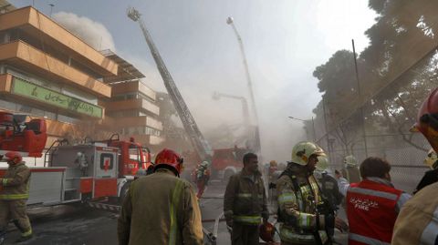 El incendio causó además 70 heridos, en su mayoría efectivos de los equipos de rescate, de los que 23 tuvieron que ser hospitalizados. Por su parte, el fiscal de Teherán, Yafarí Dolat Abadí, citado por la agencia oficial IRNA, indicó que se ha dado permiso para demoler algunos edificios colindantes con el objetivo de facilitar las labores de rescate. Todavía persisten algunas llamas entre las ruinas y el fuego ha llegado a extenderse a una construcción aledaña. El fiscal también reveló que en varias ocasiones se había advertido a los propietarios del edificio siniestrado de que este se encontraba en mal estado.