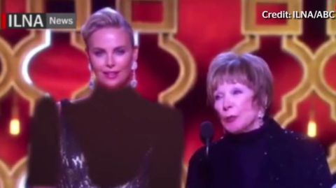 02 mar 2017 . Actualizado a las 08:09 h.La actriz sudafricana Charlize Theron se presentó a la gala de los Oscar con un vestido de Dior en el que destacaba un pronunciado escote, pero lo que los televidentes iraníes pudieron ver en el momento en el que la intérprete proclamó junto con Shirley McLaine el ganador de la mejor película de habla no inglesa parecía más un hábito de monja o el uniforme de la señorita Rottenmeier.