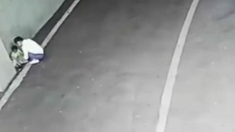 Un vídeo muestra a una mujer china abandonando a su bebé a la entrada de un párking