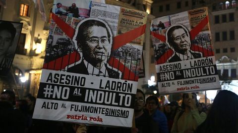 Fujimori ya cumple una condena de 25 años de prisión por violaciones a los derechos humanos, como autor mediato (con dominio del hecho) de las matanzas de Barrios Altos (1991) y La Cantuta (1992), donde murieron 25 personas a cargo del grupo militar encubierto Colina, y por el secuestro de un empresario y un periodista tras su «autogolpe» de Estado de 1992.