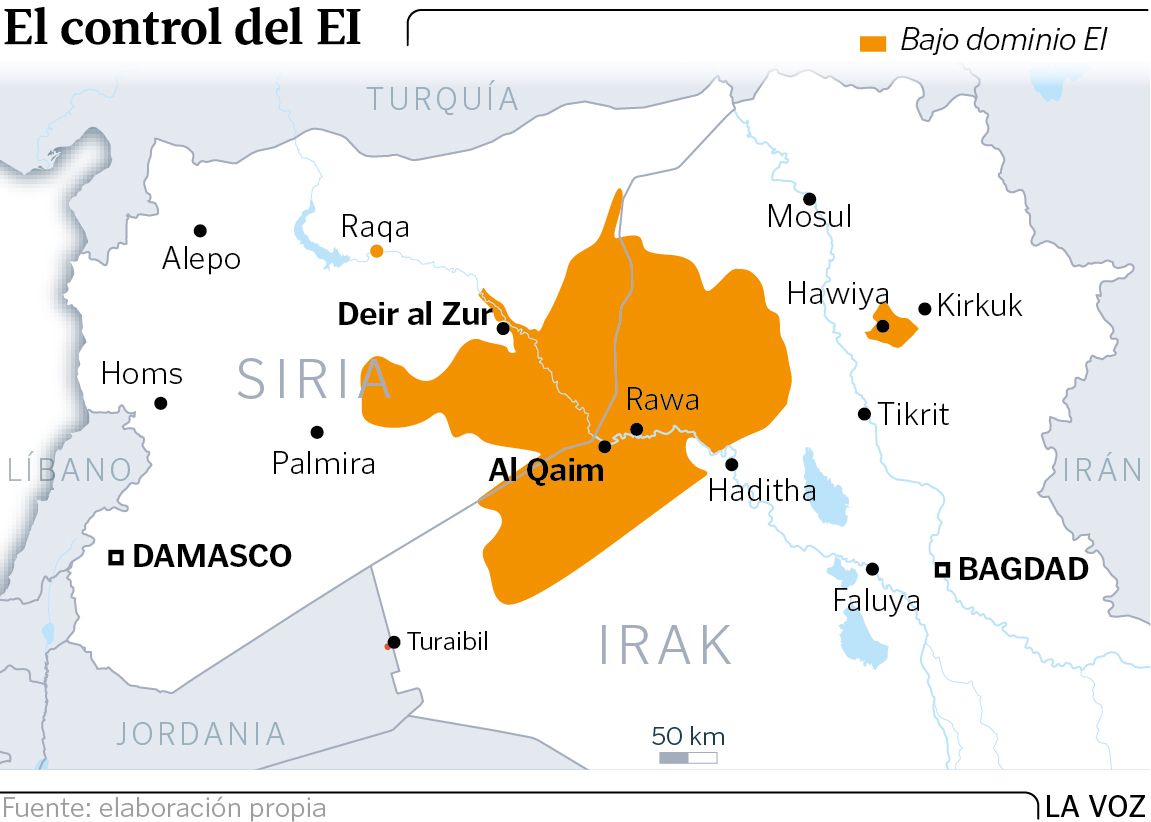 Con el fin de la ofensiva sobre Hawiya, lanzada hace 14 días, las fuerzas iraquíes se concentran ya en el último foco de resistencia yihadista, una franja en el desierto fronterizo que linda con el Éufrates. Allí, los hombres del califa controlan dos localidades: Rawa y Al Qaim. Al otro lado de la frontera, está la provincia siria de Deir al Zur, donde ayer seguían el avance de las tropas de Bachar al Asad sobre el feudo yihadista de Al Mayadin, apoyadas por submarinos rusos Veliki Novgorod y Kolpino, que lanzaron desde aguas del Mediterráneo diez misiles de crucero Kalibr.