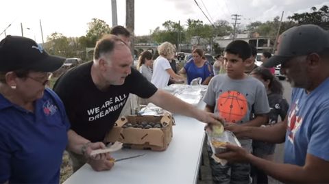 La entega de José Andrés con Puerto Rico ha sido máxima. Durante las tres semanas largas de la campaña de WCK, apenas ha pasado cuatro días en su casa, y una de ellas lo hizo con síntomas de deshidratación. Pero el asturiano lo sigue teniendo claro: «Si no lo hacemos nosotros, ¿quién lo va a hacer?». El lema de José Andrés como capitán de la WCK es de John Steinbeck, y lo lleva a rajatabla: «Donde se esté luchando para dar de comer a la gente hambrienta, allí estaré».