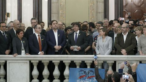 Poco después, sin embargo, Puigdemont recuperó la voz para hablar a los partidarios de la independencia que esperaban a los pies de la escalinata del Palacio del Parlament y también quiso expresarse a través de la redes sociales. Sin posibilidad de ser replicado por nadie, el president -dirigiéndose a «alcaldes, diputados y diputadas, gente que hoy nos ha querido acompañar en directo, gente que nos está siguiendo aquí o desde cualquier rincón del mundo a través de los medios de comunicación»- aseguró ante sus seguidores: «La inmensa mayoría de los representantes políticos legítimamente elegidos han culminado un mandato validado en las urnas».