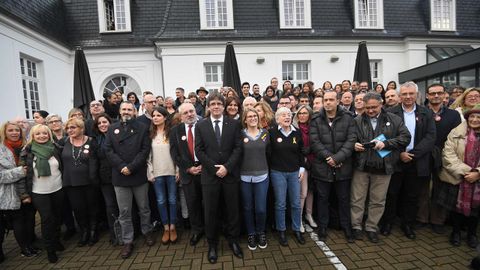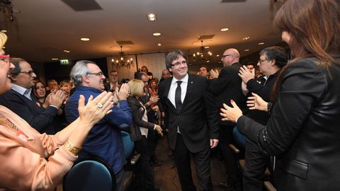 Entre los que se acercaron a Brujas a apoyarle en la presentación, se encontraron también dos de los exconsejeros en libertad vigilada y pendientes de la euroorden, Clara Ponsatí y Lluís Puig, incluidos en su lista electoral. Puigdemont y el resto de miembros de la lista y el equipo de campaña se tomaron tras el primer mitin electoral para el 21D una foto de familia, a la que siguió una reunión de trabajo a puerta cerrada.