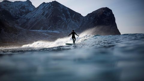 El lugar es especialmente espectacular: un amplio horizonte abierto y una sucesión de cimas nevadas que se hunden en el agua a cada lado de la playa. Está situado un poco al norte del círculo polar ártico, en la misma latitud que el norte de Siberia y de Alaska. Pero uno se puede bañar en sus aguas durante todo el año gracias a la influencia de la corriente del Golfo, ese flujo oceánico caliente que atraviesa el Atlántico desde el Caribe y acaricia el litoral noruego. «Las olas son mejores en invierno, son olas de calidad, normalmente son más grandes y consistentes», explica Lisa Blom, de 38 años y gerente de un hotel a una hora de carretera. La ventaja en verano es la luz permanente, se puede surfear a cualquier hora.