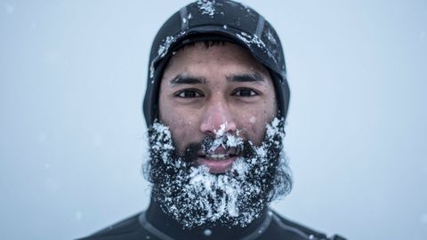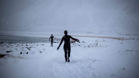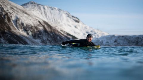 Al salir del agua, caen unos grandes copos de nieve y es entonces, según la opinión general, cuando hace frío, mucho frío. «Prefiero surfear en agua fría, por eso vine aquí», explica Unn Holgersen, veterinaria de 32 años instalada desde hace un año en Svolvaer. «Me encanta esa sensación de salir del océano y morir de frío y tener que meter los pies en un cubo de agua caliente y cambiarse rápidamente», enumera deleitándose. «Además tenemos unos días límpidos, no hay mucha gente y el escenario es hermoso, es el paquete completo».